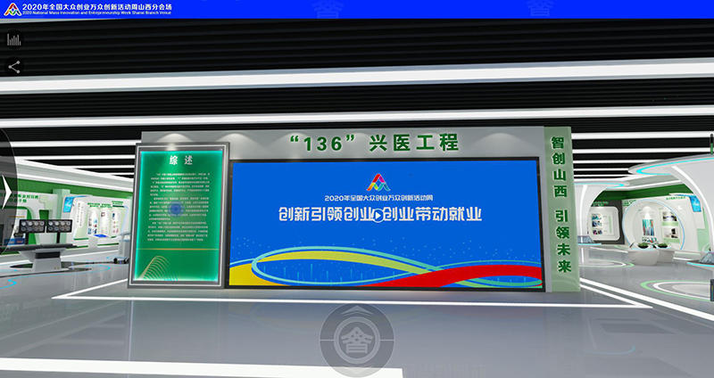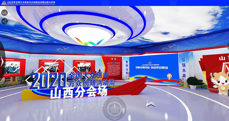 山西分会场线上依托“创响山西”网络平台设立“云上活动周”,网站栏目主要有6大版块:双创政策、新闻中心、会议日程、重要活动、网上展区和VR云展。