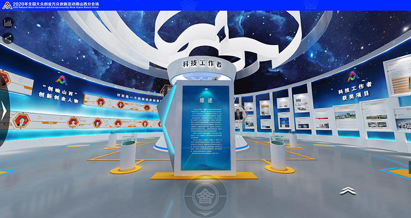 VR云展作为山西分会场的重要功能,可以呈现虚拟线下场景的效果,逼真呈现各个展区,给观众沉浸式体验。公众除了可以通过VR云展进行线上虚拟场景参观展区之外,也可以通过“网上展区”的图文形式对优秀项目进行了解。