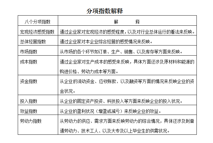 中小企业发展指数通过对国民经济八大行业的3000家中小企业进行调查,利用中小企业对本行业运行和企业生产经营状况的判断和预期数据编制而成,是反映中小企业经济运行状况的综合指数。