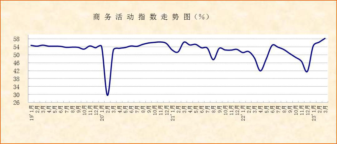 总体来看,非制造业复苏节奏继续加快,经济增长韧性在向好转变。在外部扰动持续趋弱的情况下,经济运行有望重回平稳波动区间。企业对未来市场运行保持稳定乐观预期。一季度,业务活动预期指数持续保持在63%以上。但也要看到,内需释放潜力仍需进一步挖掘。企业调查显示,在经济加快恢复的带动下,反映市场需求不足的企业比重连续3个月下降,但仍连续11个月处于50%以上。