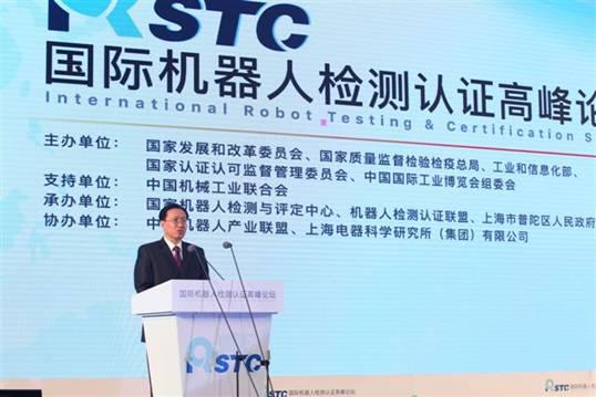 11月2日,国际机器人检测认证高峰论坛在上海召开。论坛由国家发展改革委、质检总局、工业和信息化部、认监委、工博会组委会联合主办,研讨建立机器人标准检测认证体系,推进机器人产业有序健康发展,并正式发布“中国机器人认证”标志。国家发展改革委林念修副主任出席论坛致辞,并与质检总局副局长张沁荣、工业和信息化部党组成员金书波、上海市副市长周波、国家发展改革委产业协调司司长年勇、认监委总工程师薄昱民一同为“中国机器人认证”标志揭牌。