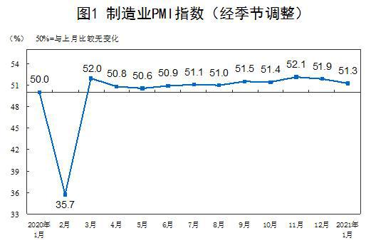 1月份,中国制造业采购经理指数(PMI)为51.3%,比上月回落0.6个百分点,连续11个月位于临界点以上,表明制造业继续保持扩张,但步伐有所放缓。
