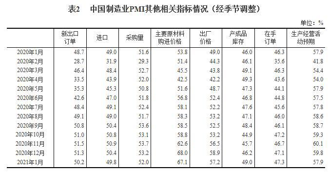 从分类指数看,在构成制造业PMI的5个分类指数中,生产指数、新订单指数均高于临界点,原材料库存指数、从业人员指数和供应商配送时间指数均低于临界点。其中:生产指数为53.5%,比上月回落0.7个百分点,高于临界点,表明制造业生产扩张力度弱于上月;新订单指数为52.3%,比上月回落1.3个百分点,继续高于临界点,表明制造业市场需求增长有所放缓;原材料库存指数为49.0%,比上月回升0.4个百分点,低于临界点,表明制造业主要原材料库存量降幅收窄;从业人员指数为48.4%,比上月下降1.2个百分点,表明制造业企业用工景气度有所下降;供应商配送时间指数为48.8%,比上月下降1.1个百分点,表明制造业原材料供应商交货时间较上月放慢。