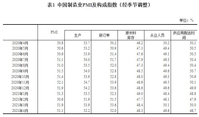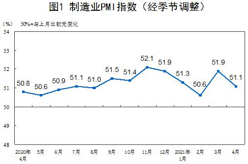 4月份,中国制造业采购经理指数(PMI)为51.1%,低于上月0.8个百分点,仍高于临界点,制造业继续保持扩张态势。