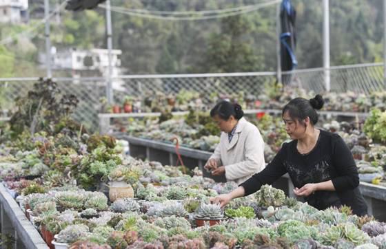 图为黔江区李家溪安置点居民在城南街道一生态产业基地工作