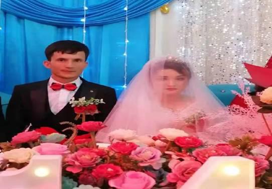 图为艾克拜尔·斯依提艾合麦提和妻子在婚礼现场