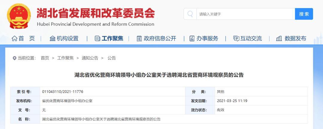 为进一步服务好市场主体,提升营商环境工作精准度,推动建设一流营商环境,湖北现面向全社会公开选聘营商环境观察员。