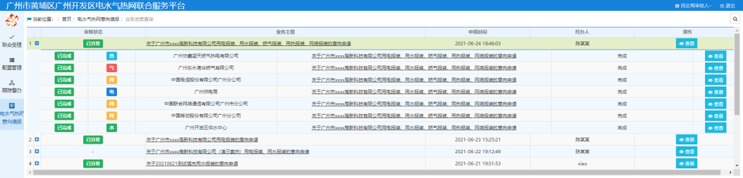 此外,对于涉及外线工程审批的项目,该平台自动将报装信息推送至市工程建设联合审批系统。通过平台间对接,各项业务节点信息将自动反馈到联合服务平台,实现办理过程全流程跟踪。