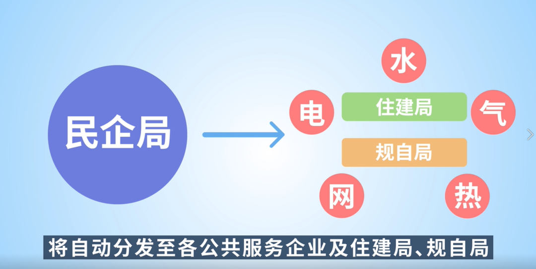 为方便各公共服务企业、政府部门提前获取筹建项目报装需求,区民企局将服务时间点前移,帮助企业在联合服务平台填写报装基本信息,完成后表单自动分发给各公共服务企业以及区住建、区规自局等部门。