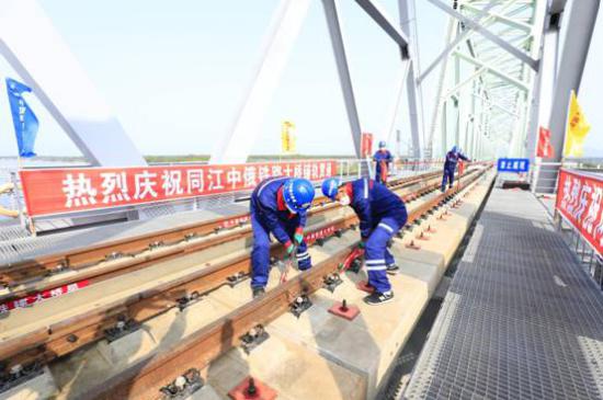 8月17日,随着中俄两国准轨接口最后一组轨道夹板安装完成,中俄两国首座跨江铁路大桥——同江中俄黑龙江铁路大桥实现铺轨贯通,为大桥全线开通运营奠定了基础。