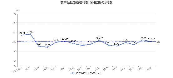 7类农产品批发价格指数周同比“1涨6降”。其中,粮食价格指数上涨0.79%;蔬菜、鸡蛋、食用油、水果、肉禽(猪肉)和水产品价格指数分别下降13.42%、9.65%、5.73%、5.61%、2.7%(6.44%)、1.89%。
