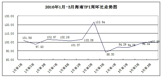 受博鳌亚洲论坛年会召开的影响,交通类、住宿类商品和服务价格会有所上涨,预计下周海南TPI将呈小幅上涨的趋势。