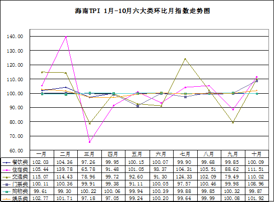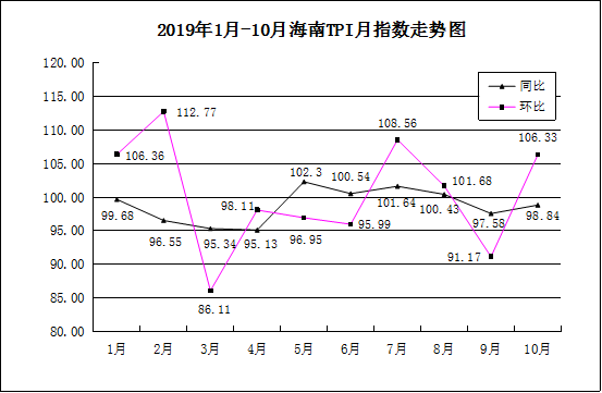 10月海南TPI同比下降的主要原因:一是因各大酒店为抢占海南十月旺季旅游消费酒店住宿市场,推出更大力度的促销活动,吸引旅游过夜游客入住。二是因海南机场航线增加,折扣力度加大,部分海南出发至外地的航班机票价格降幅达10%以上。三是因海南部分旅游景点推出降价或免票的特价活动,刺激旅游消费。