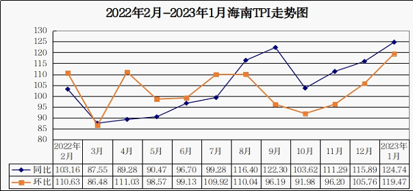 2023年1月,海南TPI同比上涨24.74%,环比上涨19.47%。