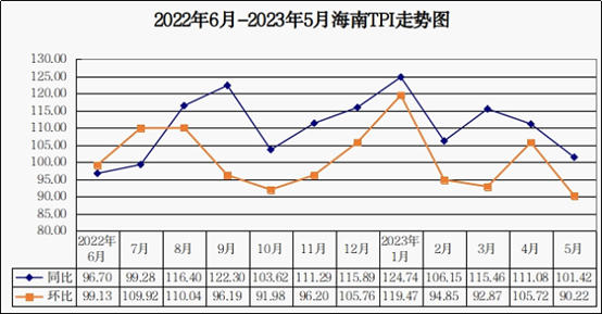2023年5月,海南TPI同比上涨1.42%,环比下降9.78%。