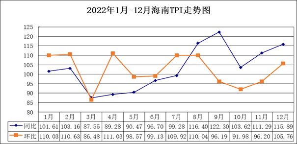 2022年12月,海南TPI同比上涨15.89%,环比上涨5.76%。