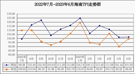 2023年6月,海南TPI同比上涨1.69%,环比下降0.41%。