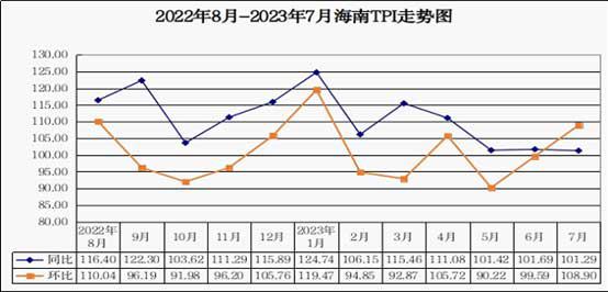 2023年7月,海南TPI同比上涨1.29%,环比上涨8.90%。