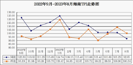 2023年8月,海南TPI同比下降7.35%,环比上涨0.34%。