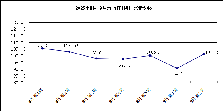 受旅游淡季影响,预计下周海南TPI环比保持当前水平小幅波动。