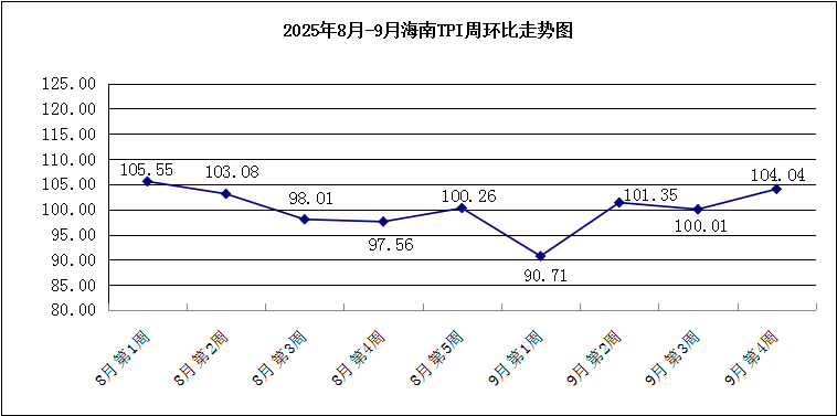 受国庆期间旅游消费拉动,酒店、交通等部分旅游商品和服务价格普遍上涨,预计下周海南TPI将呈上涨的趋势。