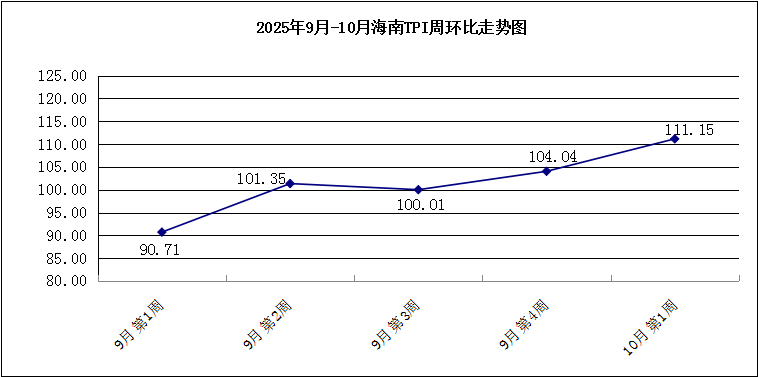 随着国庆假期结束,部分旅游商品和服务价格将有所回落,预计下周海南TPI将呈下降的趋势。