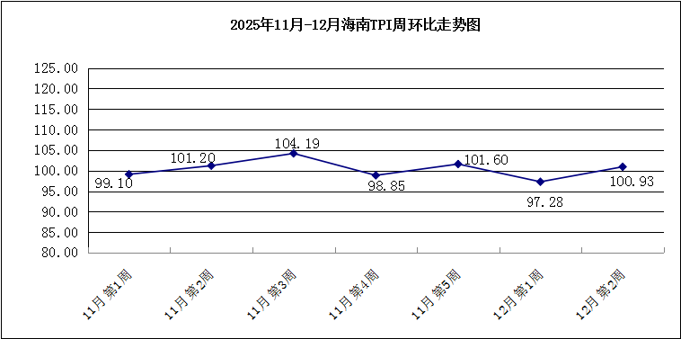 随着天气渐冷,来琼游客和候鸟人群增多,预计下周海南TPI将继续呈稳中略涨的趋势。