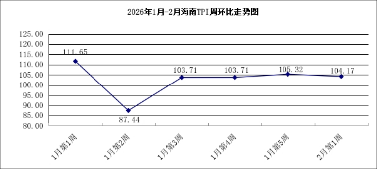 受春节临近影响,游客及候鸟、返乡人群持续增多,预计下周海南TPI继续呈上涨的趋势。