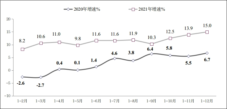 图2 2020年-2021年软件业从业人员工资总额增长情况
