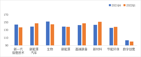 图 2021Q4和2022Q1战略性新兴产业分领域景气指数(季调后)