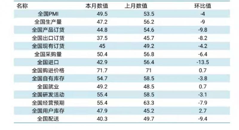 据中国科学技术发展战略研究院、中采咨询联合发布的数据显示,2022年3月中国战略性新兴产业采购经理指数(Emerging Industries PMI)为为45.7%,比上月回落3.8个百分点。从各项指标看,PMI指标为45.7%,比上月回落3.8个百分点。生产量指标为42.1%,比上月回落5.1个百分点。产品订货指标为39.3%,比上月回落5.5个百分点。进口指标为46.3%,比上月回升3.4个百分点。自有库存指标为48.5%,比上月回落6.2个百分点。就业指标为47.9%,比上月回落1.3个百分点。