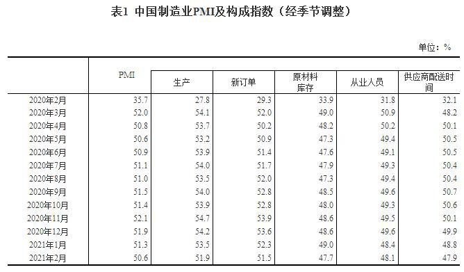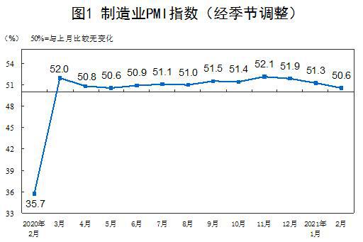 2月份,中国制造业采购经理指数(PMI)为50.6%,低于上月0.7个百分点,连续12个月位于临界点以上,制造业景气水平较上月有所回落。