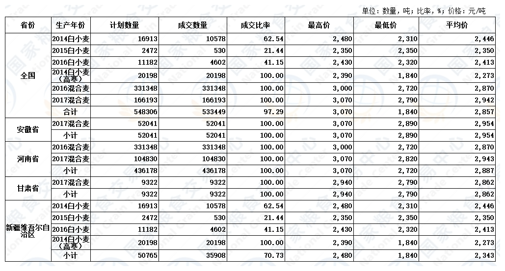 2022年3月30日最低收购价和国家临时存储小麦交易结果