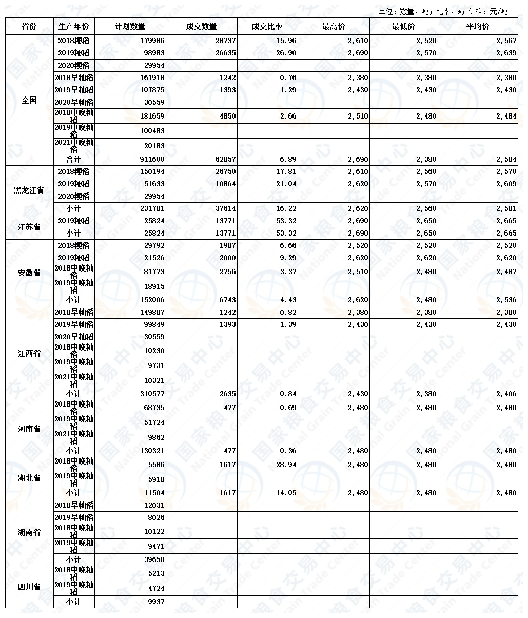 2022年5月10日最低收购价稻谷交易结果