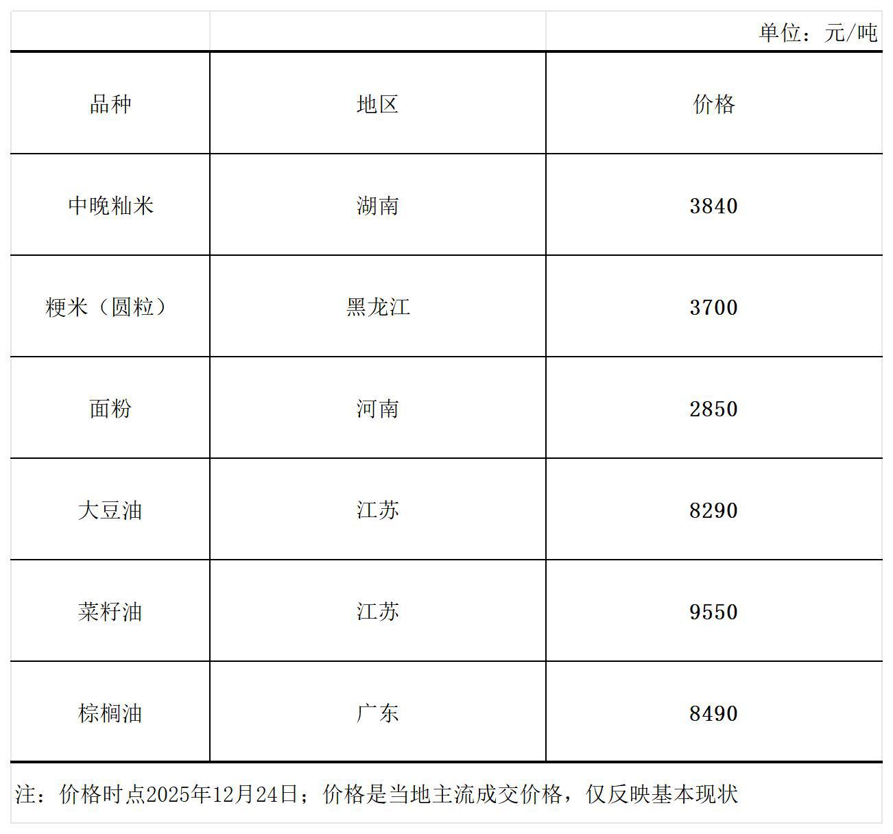 主要粮油商品市场价格周报(12月24日)