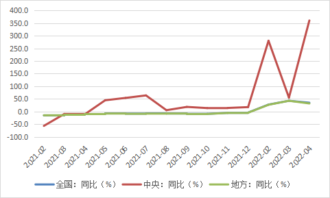 1-4月累计,全国政府性基金预算支出31488亿元,同比增长35.2%。分中央和地方看,中央政府性基金预算本级支出956亿元,同比增长360%;地方政府性基金预算相关支出30532亿元,同比增长32.3%。