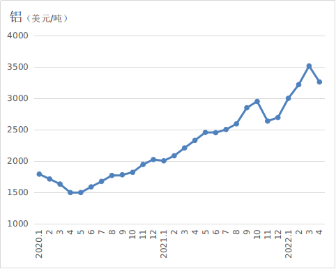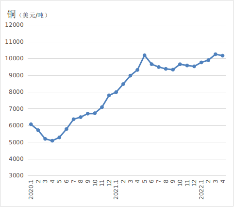 本月国际有色金属价格涨跌不一,伦敦金属交易所(LME)三个月铜、铝、锌期货月均价格分别为10162.4美元/吨、3262.7美元/吨、4300.9美元/吨,较上月分别变动-0.8%、-7.2%、8.4%。