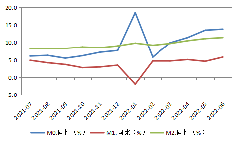 6月末,广义货币(M2)余额258.15万亿元,同比增长11.4%,增速分别比上月末和上年同期高0.3个和2.8个百分点;狭义货币(M1)余额67.44万亿元,同比增长5.8%,增速分别比上月末和上年同期高1.2个和0.3个百分点;流通中货币(M0)余额9.6万亿元,同比增长13.8%。