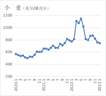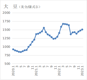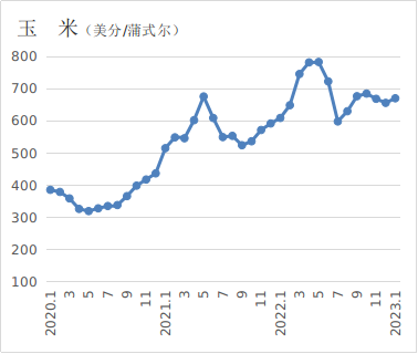 本月国际农产品价格整体波动不大,芝加哥交易所(CBOT)玉米期货月均价格为670.6美分/蒲式耳,较上月上涨2.2%,较上年同期上涨10.1%;芝加哥交易所(CBOT)小麦期货月均价格为744.4美分/蒲式耳,较上月下降1.9%,较上年同期下降3.6%;芝加哥交易所(CBOT)大豆期货月均价格为1507.2美分/蒲式耳,较上月上涨2.1%,较上年同期上涨7.3%。