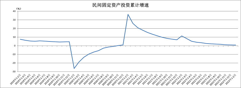 1—2月份,全国固定资产投资(不含农户)53577亿元,同比增长5.5%。其中,民间固定资产投资29420亿元,同比增长0.8%。从环比看,2月份固定资产投资(不含农户)增长0.72%。分产业看,第一产业投资1146亿元,同比增长1.5%;第二产业投资16058亿元,增长10.1%;第三产业投资36373亿元,增长3.8%。分地区看,东部地区投资同比增长5.8%,中部地区投资增长4.1%,西部地区投资增长6.3%,东北地区投资增长4.9%。