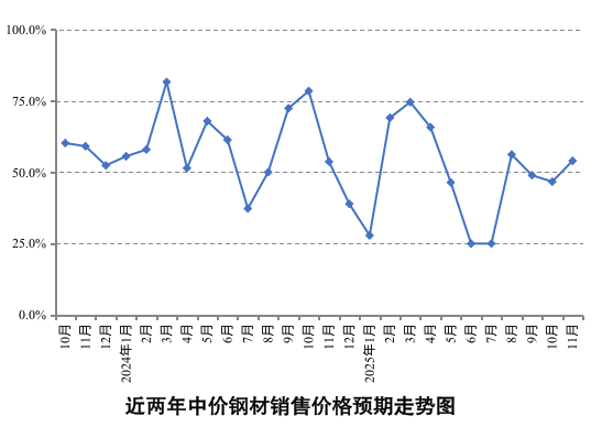 预计11月钢材市场价格走势谨慎乐观。受供需恢复力度不平衡,市场预期偏弱等因素影响,10月份全国钢材市场价格呈现震荡走弱态势,价格重心较上月有所下移。目前来看,积极的财政政策推动基建落地与制造业提振,为钢材市场价格提供了一定支撑,尽管迈入传统淡季,但环保限产政策持续发力,原料成本支撑相对稳定,受采暖季限产供应预期收缩以及部分地区基建项目年末阶段性需求释放等因素影响,市场价格下行空间相对有限。