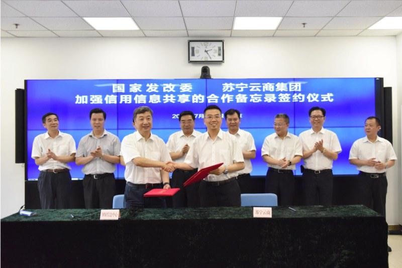 2017年7月5日下午,国家发改委副主任连维良在委内会见了苏宁控股集团董事长张近东一行,双方就进一步加强信用体系建设等内容交换了意见,并签署了《关于加强信用信息共享的合作备忘录》。