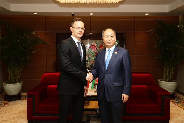 5月14日下午,在“一带一路”国际合作高峰论坛举行期间,王晓涛副主任在国家会议中心会见了匈牙利外交和对外经济部部长西雅尔多。王晓涛副主任对西雅尔多部长来华参加论坛表示热烈欢迎。双方重点就匈塞铁路项目进展情况和下一步工作交换了意见。
