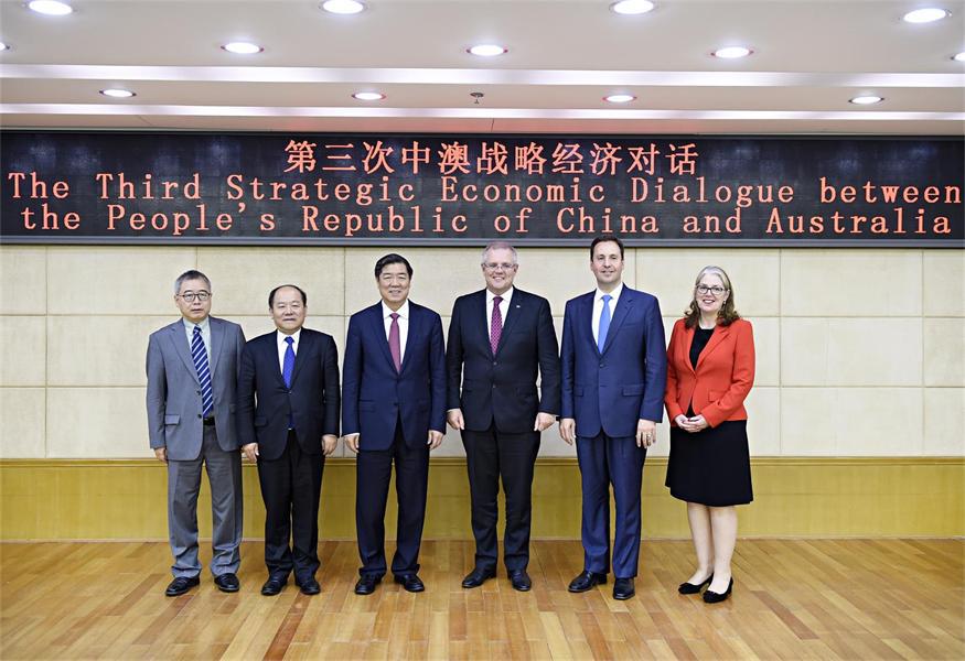 9月16日上午,何立峰主任在委内与澳大利亚国库部长莫里森、澳贸易、旅游与投资部长乔博主持召开第三次中澳战略经济对话,就全球及两国宏观经济形势、经济改革、中澳双向投资的机遇与挑战、中澳合作挖潜等进行了深入交流。宁吉喆副主任参加对话并就双边投资及未来合作发言。我委政研室、综合司、运行局、体改司、外资司、西部司、产业司、就业司、经贸司、财金司、价监局、国际司及外交部美大司负责同志参加了对话。