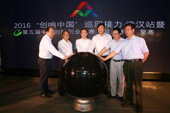 7月5日上午,创响中国巡回接力武汉站活动在东湖新技术开发区启动,国家发展改革委副主任林念修、湖北省副省长郭生练出席启动仪式并致辞,林念修副主任向武汉市万勇市长授“创响中国”会旗,与会领导共同启动2016“创响中国”巡回接力武汉站活动。