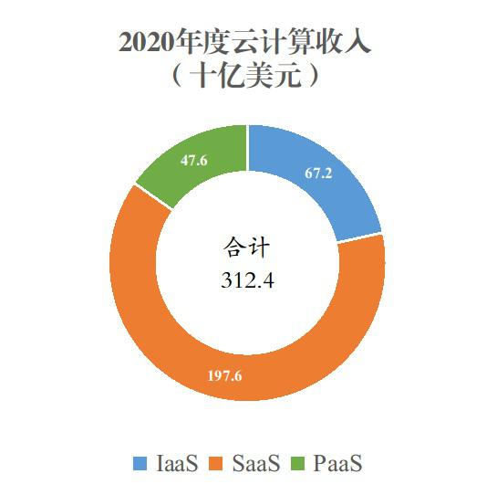 据中国互联网数据中心(IDC)统计,2020年度全球公共云计算服务市场收入达3124亿美元,同比增长24.1%。云计算服务包括基础设施即服务(IaaS)、软件即服务(SaaS)、平台即服务(PaaS),市场收入分别为占21.5%、63.3%和15.2%。