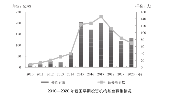国家发展改革委编写出版的《2020年中国大众创业万众创新发展报告》显示:“十三五”时期,我国创业融资呈现快速发展,政府引导基金、早期投资、创业投资进入理性发展阶段,年均募投资金规模均处于历史高位运行,企业境内外上市更加顺畅,有效引导社会资金积极涌向创业企业,不仅有效支持了科技创新成果转化应用、助力经济发展新动能的培育,也拓宽了创新创业企业投融资渠道、加大了金融服务实体经济的力度。全国累计设立政府引导基金的数量由2015年底的780支增加到2020年底的1851支,总目标规模从2015年的2.18万亿元增加到2020年的11.53万亿元;五年早期投资年均募资规模160亿元、投资规模130亿元,分别是“十二五”年均规模的2.38倍和4.06倍;五年创业投资年均募资规模2938亿元、投资规模1797亿元,分别是“十二五”年均规模的2.47倍和2.24倍。