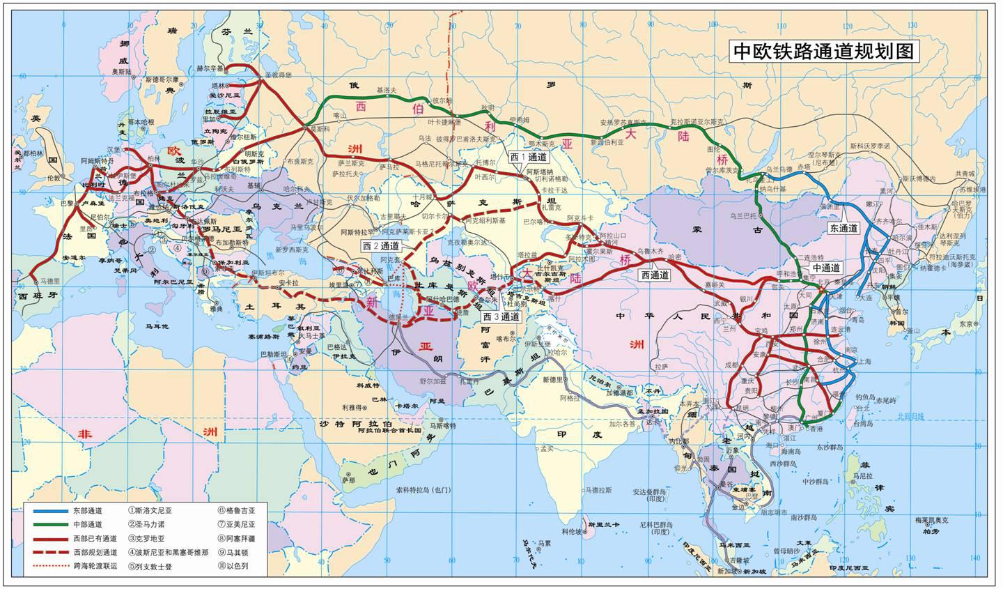 《规划》明确了中欧铁路运输通道、枢纽节点和运输线路的空间布局,统筹利用中欧铁路东中西三条国际联运通道,按照铁路“干支结合、枢纽集散”的班列组织方式,在内陆主要货源地、主要铁路枢纽、沿海重要港口、沿边陆路口岸等地规划设立43个枢纽节点,建设发展43条运行线,并提出完善国际贸易通道、加强物流枢纽设施建设、加大货源整合力度、创新服务模式、建立完善价格机制、构建信息服务平台、推进便利化大通关等七大任务,着力优化运输组织及集疏运系统,提高中欧班列运行效率和效益。