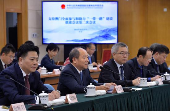 2019年10月15日,支持澳门全面参与和助力“一带一路”建设联席会议第二次会议在京召开。国家发展改革委副主任宁吉喆、澳门特区政府行政法务司司长陈海帆在会上致辞。联席会议召集人、国家发展改革委副秘书长苏伟主持会议。