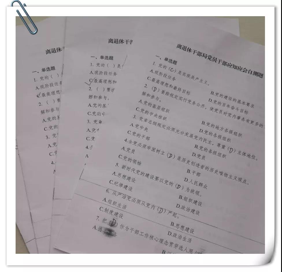 自测题以习近平总书记在中央和国家机关党的建设工作会议上的重要讲话,《论坚持党对一切工作的领导》《中央和国家机关党员干部应知应会党内法规文件选编》等重要书籍、《中共中央关于加强党的政治建设的意见》《关于加强和改进中央和国家机关党的建设的意见》《党委(党组)落实全面从严治党主体责任规定》以及委党组贯彻落实的实施意见为主要内容,测试内容突出政治建设,围绕加强党的领导,加强党的建设,强化纪律规矩,增强党员意识,着力解决“灯下黑”问题,特别是政治意识淡化、党的领导弱化、党建工作虚化、责任落实软化等问题,推动广大党员干部高度重视党的建设,深入学习习近平新时代中国特色社会主义思想,努力加强基层组织建设,推进“四强党支部”、模范机关建设。局党委精心编制了自测题答案解析,明确列出题目出处,细化到具体的文件法规条目和书本的具体页码。